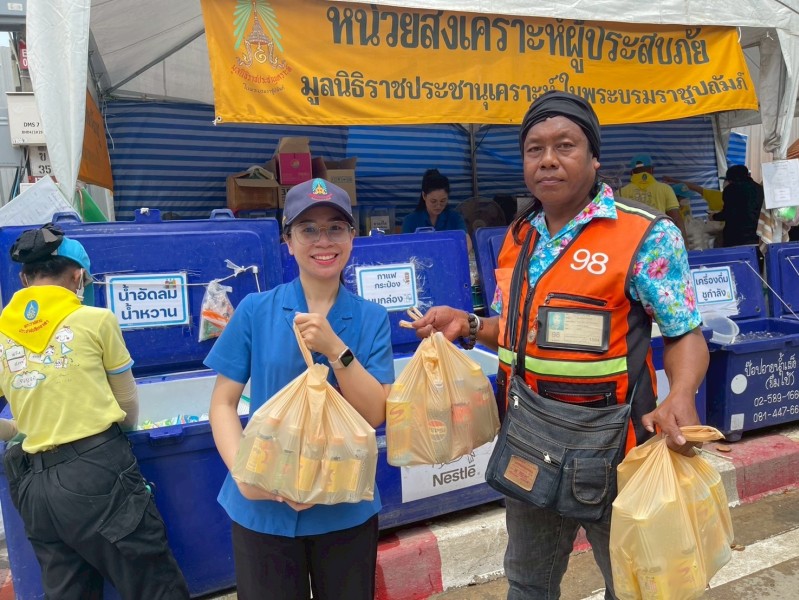 ๘.คุณวรี สุขสำเนียร และคุณวันทนีย์ ภมรจันทรมัส ร่วมสนับสนุนเครื่องดื่มชูกำลัง กาแฟ และข้าวเหนียวหมู