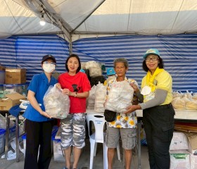 ๔.คุณปัณฑารี เลิศวิโรจน์ถาวร และเพื่อนกัลยาณมิตร ร่วมสนับสนุนข้าวเหนียวมะม่วง จำนวน ๗๕ กล่อง ข้าวหมกไก่ จำนวน ๖ กล่อง ข้าวหมกปลาซาบะ จำนวน ๖ กล่อง เค้กกล้วยหอม จำนวน ๒๐ ชิ้น และถุงพลาสติก จำนวน ๒ แพ็ค