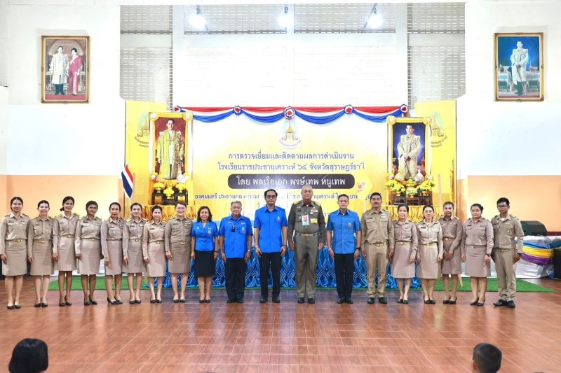 พลเรือเอก พงษ์เทพ หนูเทพ องคมนตรีประธานกรรมการบริหาร มูลนิธิราชประชานุเคราะห์ ในพระบรมราชูปถัมภ์ พร้อมคณะ เดินทางไปตรวจเยี่ยมโรงเรียนราชประชานุเคราะห์ ๖๔ อำเภอเมืองสุราษฎร์ธานี จังหวัดสุราษฎร์ธานี