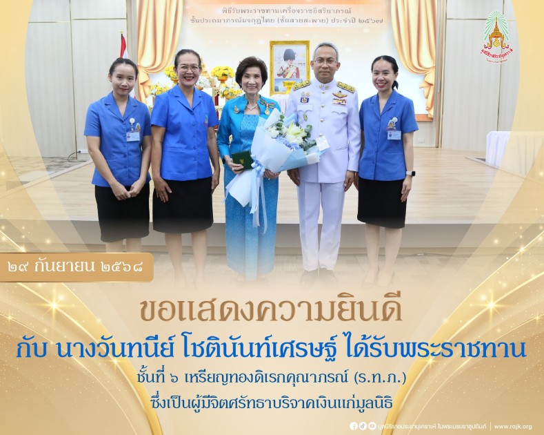 ขอแสดงความยินดีกับผู้ที่ได้รับพระราชทานพิธีรับพระราชทานเครื่องราชอิสริยาภรณ์ฯ ประจำปี ๒๕๖๗