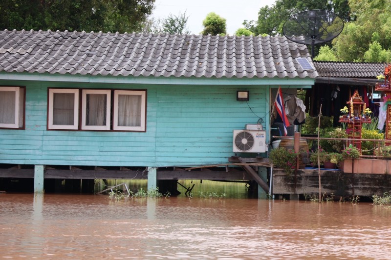 จากนั้น องคมนตรีและคณะ เดินทางลงพื้นที่เยี่ยมเยียนให้กำลังใจราษฎรผู้ประสบอุทกภัยในพื้นที่ตำบลท่าดินแดง อำเภอผักไห่ พร้อมเชิญสิ่งของพระราชทาน จำนวน ๓ ครัวเรือน รวมทั้งสิ้น ๔,๐๐๐ ครัวเรือน นำมาซึ่งความปลาบปลื้ม ต่างปิติยินดีและสำนึกในพระมหากรุณาธิคุณเป็นล้นพ้นอย่างหาที่สุดมิได้ที่พระบาทสมเด็จพระเจ้าอยู่หัวฯ ทรงห่วงใยราษฎร