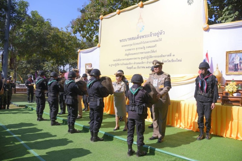 นายพลากร สุวรรณรัฐ องคมนตรี นายกมูลนิธิราชประชานุเคราะห์ในพระบรมราชูปถัมภ์ ประธานอนุกรรมการติดตามและขับเคลื่อนโครงการอันเนื่องมาจากพระราชดำริในพื้นที่ภาคเหนือ พร้อมด้วยนางสุพร ตรีนรินทร์ เลขาธิการ กปร. เจ้าหน้าที่มูลนิธิราชประชานุเคราะห์ฯ และคณะอนุกรรมการฯ เดินทางไปยังฐานปฏิบัติการเจ้าแม่มะลิกา บ้านสันต้นม่วง ตำบลมะลิกา อำเภอแม่อาย จังหวัดเชียงใหม่ เพื่อเชิญสิ่งของพระราชทานไปมอบแก่ผู้ปฏิบัติงานหน่วยความมั่นคง จำนวน ๕๒ ถุง