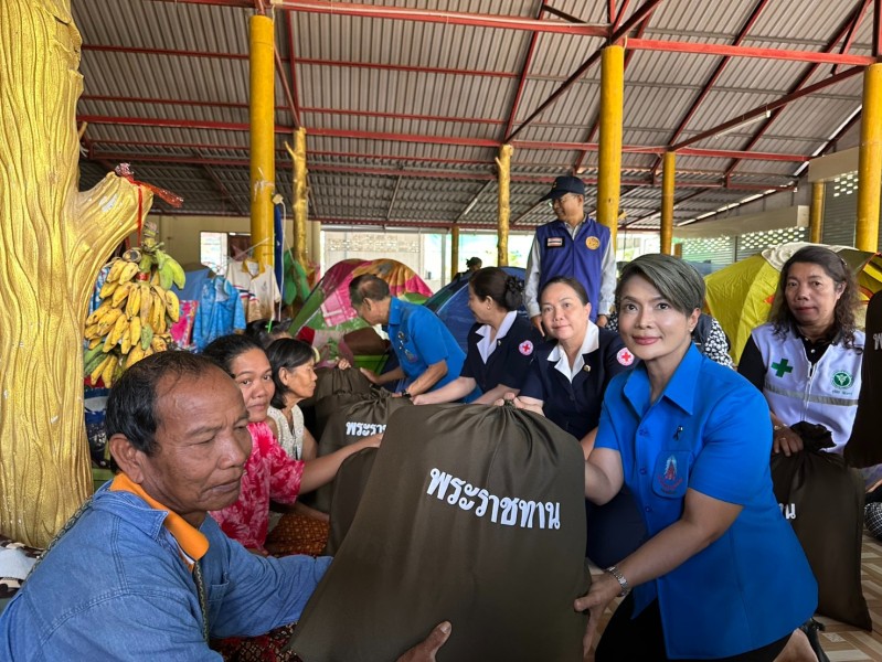 นายวิลาศ รุจิวัฒนพงศ์ รองประธานฝ่ายบรรเทาทุกข์ และคณะเจ้าหน้าที่มูลนิธิราชประชานุเคราะห์ฯ มอบถุงพระราชทานเครื่องอุปโภคที่จำเป็น ถุงพระราชทานสำหรับเด็ก และเต็นท์นอน แก่ผู้ที่ได้รับผลกระทบจากเหตุการณ์คว ...