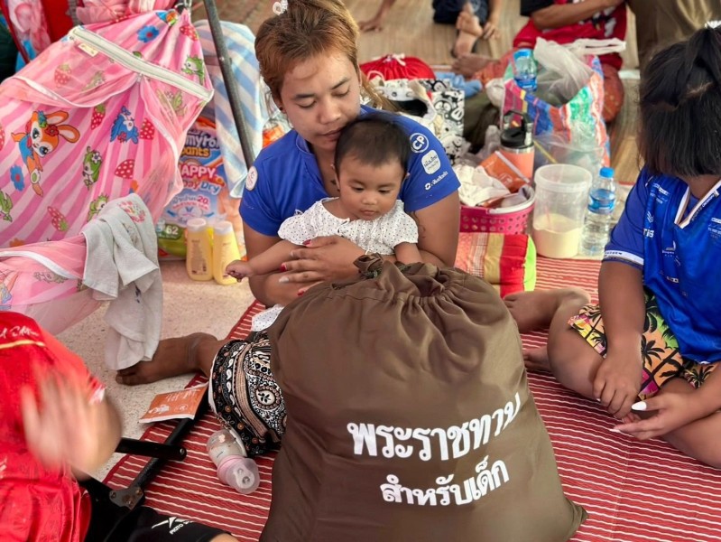 นอกจากนี้มูลนิธิราชประชานุเคราะห์ ในพระบรมราชูปถัมภ์ ได้นำถุงพระราชทานเครื่องอุปโภคที่จำเป็น ถุงพระราชทานสำหรับเด็ก และเต็นท์นอน มอบให้แก่ผู้ที่ได้รับผลกระทบจากเหตุการณ์ความไม่สงบในพื้นที่ชายแดน ไทย-กัมพูชา ที่อพยพจากที่พักอาศัยมาที่ศูนย์พักพิงในพื้นที่ ๗ จังหวัด ได้แก่ จังหวัดอุบลราชธานี ศรีสะเกษ สุรินทร์ บุรีรัมย์ สระแก้ว ตราด และจังหวัดจันทบุรี รวมทั้งสิ้น ๑๕,๕๐๐ ครอบครัว ซึ่งได้ดำเนินการช่วยเหลือตั้งแต่วันที่ ๘ ธันวาคม ๒๕๖๘ เป็นต้นมา โดยมอบหมายให้ผู้ว่าราชการจังหวัดในฐานะประธานกรรมการมูลนิธิราชประชานุเคราะห์ประจำจังหวัด นำผ้าห่มและเต็นท์นอนบางส่วนที่มูลนิธิสำรองไว้ที่จังหวัด ไปมอบแก่ราษฎรเพื่อบรรเทาความเดือดร้อนในเบื้องต้น และสร้างขวัญกำลังใจแก่ประชาชนที่ได้รับผลกระทบ ให้สามารถดำรงชีพต่อไปได้ในสถานการณ์ฉุกเฉินจนกว่าจะกลับเข้าสู่ภาวะปกติ