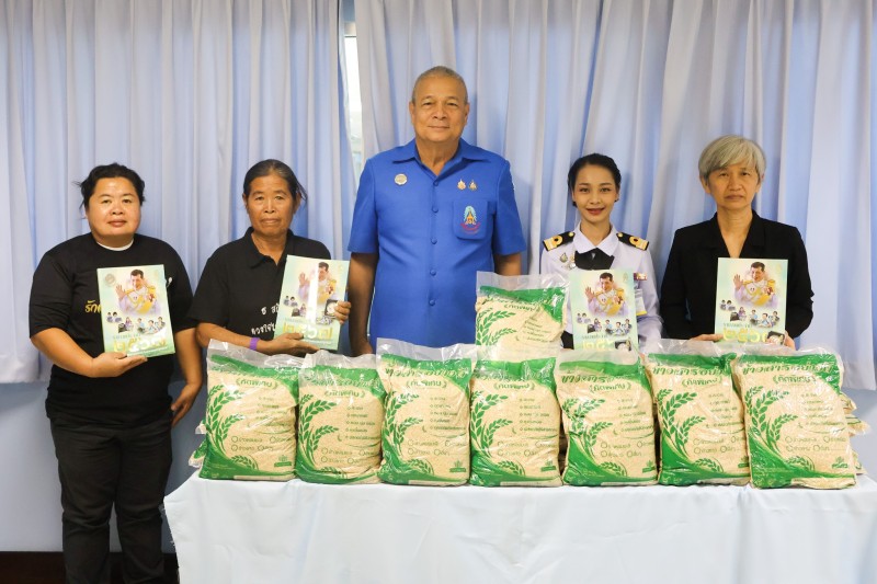 พลเรือเอก พงษ์เทพ หนูเทพ องคมนตรี ประธานกรรมการบริหาร มูลนิธิราชประชานุเคราะห์ ในพระบรมราชูปถัมภ์ เป็นประธานในพิธีรับมอบข้าวกล้องหอมพวงอ่อน จำนวน ๒๓๐ ถุง
