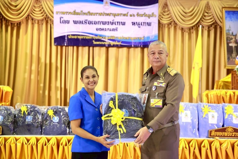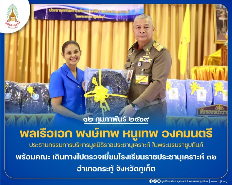 พลเรือเอก พงษ์เทพ หนูเทพ องคมนตรี ประธานกรรมการบริหารมูลนิธิราชประชานุเคราะห์ ในพระบรมราชูปถัมภ์ พร้อมคณะ เดินทางไปตรวจเยี่ยมโรงเรียนราชประชานุเคราะห์ ๓๖ อำเภอกระทู้ จังหวัดภูเก็ต