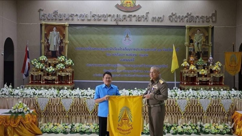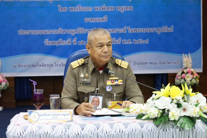 พลเรือเอก พงษ์เทพ หนูเทพ องคมนตรี ประธานกรรมการบริหารมูลนิธิราชประชานุเคราะห์ ในพระบรมราชูปถัมภ์ พร้อมคณะ เดินทางไปตรวจเยี่ยมโรงเรียนราชประชานุเคราะห์ ๓๗ อำเภอเมืองกระบี่ จังหวัดกระบี่
