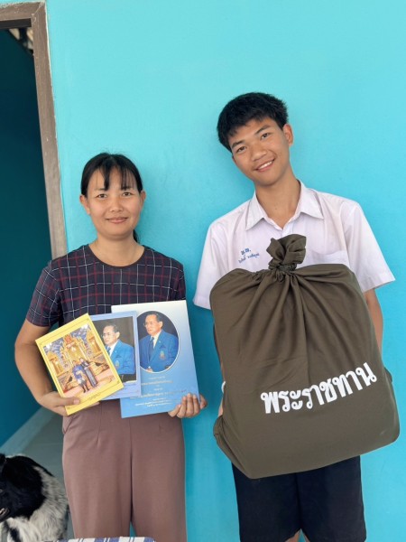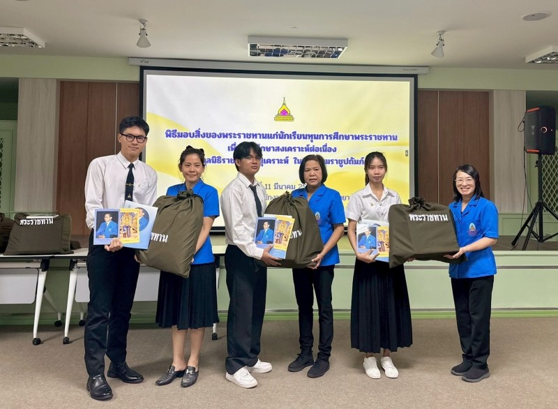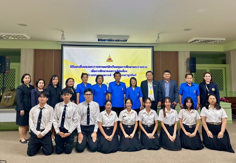 นางสาววิจิตา รชตะนันทิกุล นางสาวนฤมล พงษ์สุภาพ และนางสาวธันยลักษณ์ พรหมมณี คณะกรรมการฝ่ายการสังคมสงเคราะห์ กล่าวให้โอวาทนักเรียนทุน ฯ พร้อมมอบสิ่งของพระราชทาน จำนวน ๑๓ ชุด เพื่อเป็นขวัญและกำลังใจ