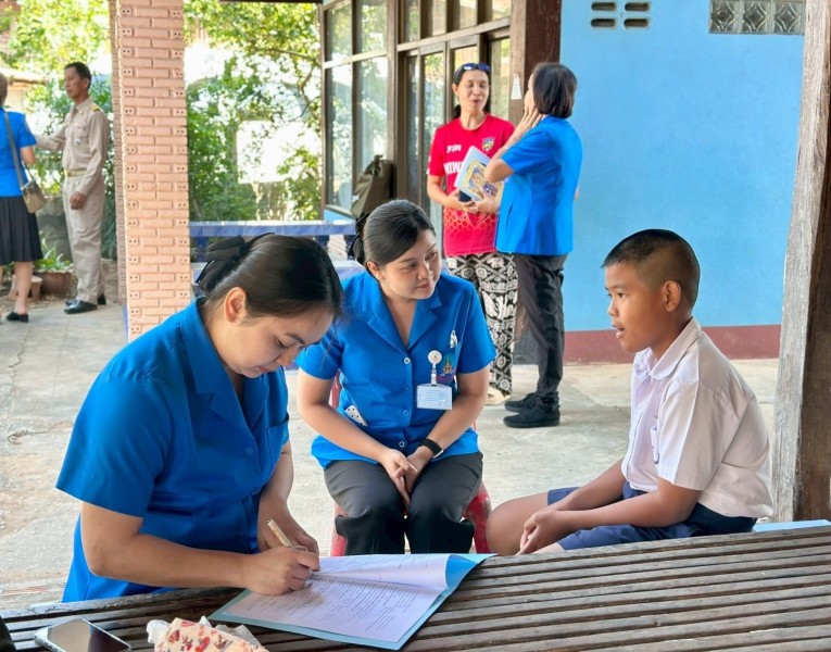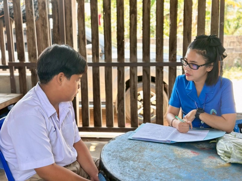 คณะกรรมการฝ่ายการสังคมสงเคราะห์ เจ้าหน้าที่มูลนิธิ ฯ ลงพื้นที่เยี่ยมติดตามผลการศึกษาและสภาพชีวิตความเป็นอยู่ของนักเรียนทุนพระราชทานเพื่อการศึกษาสงเคราะห์ ในพื้นที่จังหวัดอุบลราชธานี