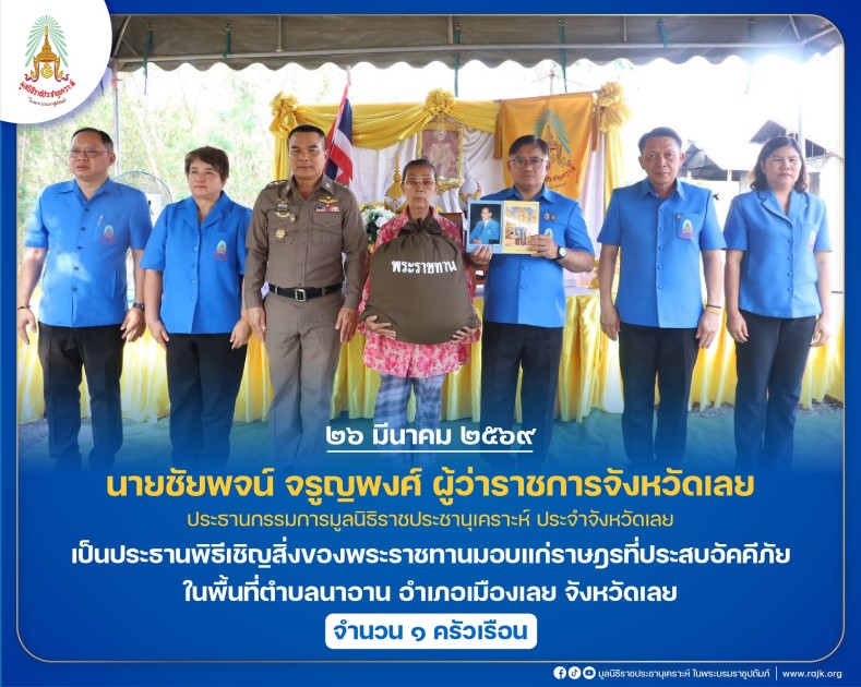เป็นประธานพิธีเชิญสิ่งของพระราชทานมอบแก่ราษฎรที่ประสบอัคคีภัย ในพื้นที่ตำบลนาอาน อำเภอเมืองเลย จังหวัดเลย